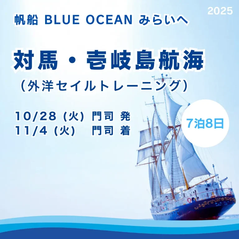 「帆船 BLUE OCEAN みらいへ」は、一般の方が自由に乗船できる日本で唯一の練習帆船です。セイルトレーニングと合わせ海洋環境学習を行うなど、より身近に海と接する体験活動を通じて、地球市民として環境問題を考え行動変容に繋げることを目指しています。さらに環境調査船としてマイクロプラスチックの海洋分布調査等も実施するなど、日本を代表する帆船として幅広い役割を担い運航しています。