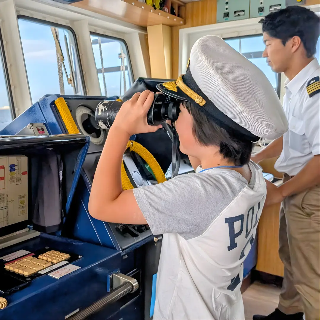 子供も大人も楽しめて勉強にもなる、船上プログラムがいっぱいの、2時間半の体験航海(セイルトレーニング入門)です。みんなで力を合わせてセイル(帆)を広げたら、全長52mの〈みらいへ〉を右へ左へ動かしてみるドキドキの操舵体験や、バウスプリット渡りに挑戦しよう!また東京湾の小さな生き物やマイクロプラスチックを顕微鏡で探す、海洋環境調査も体験します。