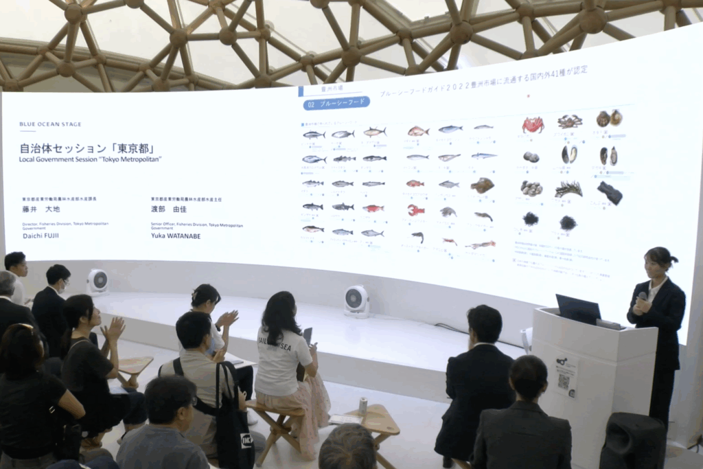 また最後には、セイラーズフォーザシー日本支局が協定を結んでいる東京都、京都府、葉山町の代表者をお招きし、それぞれの自治体の取り組みの紹介や、代表者同士によるトークセッションを開催しました。国内外のブルーシーフードに関する事例を幅広く紹介することで、持続可能な水産物に対する知見が深められる一日となりました。